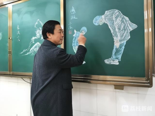 朱中海,全国优秀教师,退休前是扬州数学名师工作室领衔人。他曾经凭借独特的粉笔画,将数学知识转化为200多幅生动的画作,成为学生心中的“网红教师”。2022年退休后,参加了扬州对口援建新疆新源县的“银龄讲学计划”。